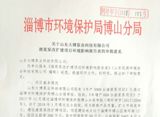 2020年8月3日,山东大博泵业科技有限公司根据渣浆泵生产线及配套喷漆房提升改造项目竣工环...